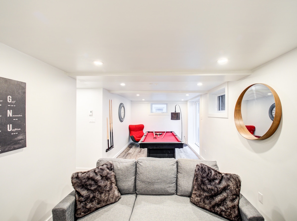 Willkommen in unserem gemütlichen Zuhause in Longueuil! Diese Unterkunft liegt nur 15 Gehminuten oder 3 Fahrminuten von der U-Bahn-Station Yellow Line entfernt. Du hast einfachen Zugang zu Montreal. Unser Haus verfügt über zwei Schlafzimmer, die jeweils mit einem Queensize-Bett ausgestattet sind. Hier findest du alles, was du für einen angenehmen Aufenthalt benötigst, einschließlich kostenfreier Parkplätze. Genieße den großen Vorgarten, der von schönen Bäumen beschattet wird und ideal zum Entspannen nach einem Tag der Erkundung der Stadt ist.