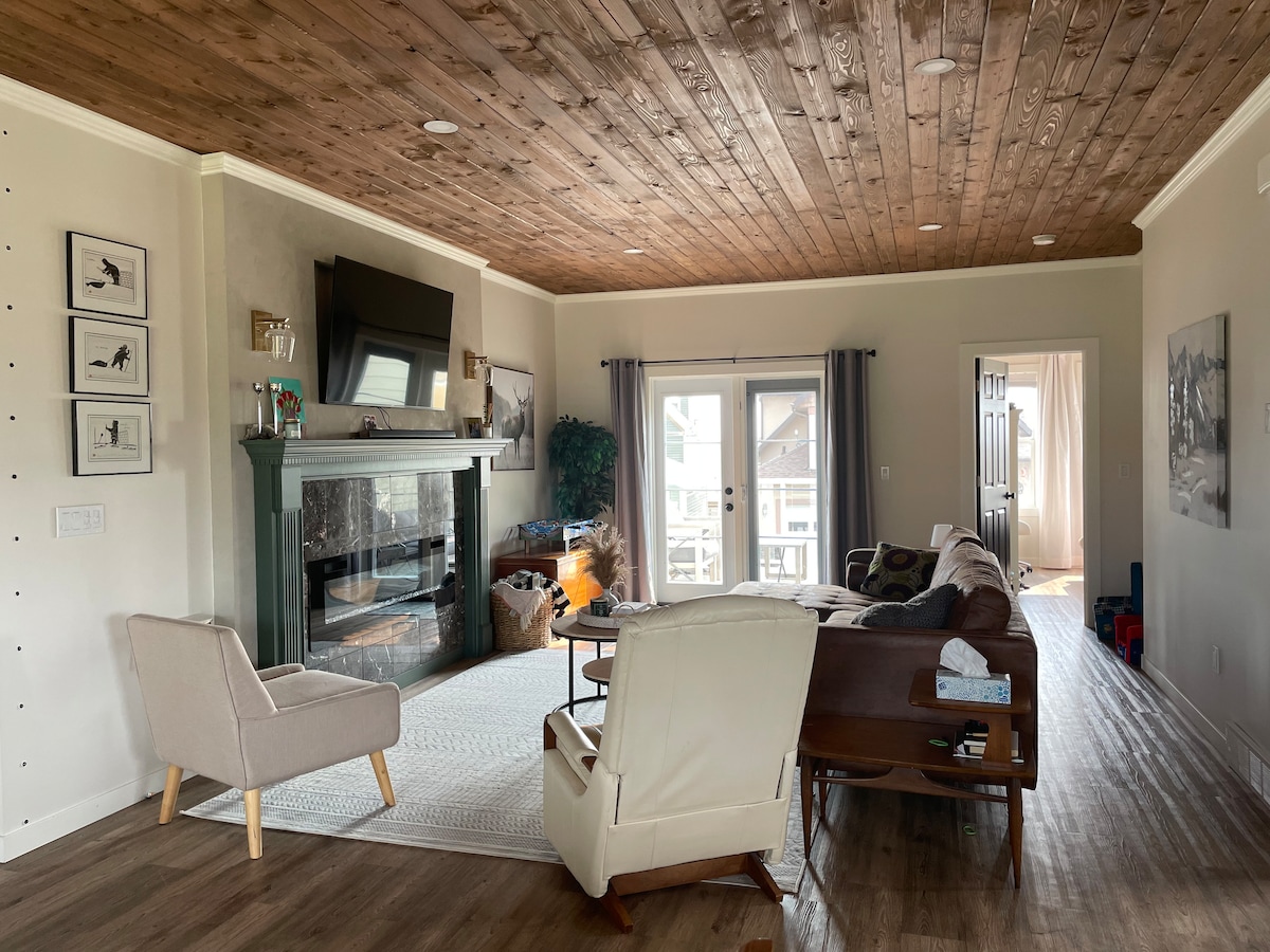 Das sind etwa 2000 Quadratfuß Wohnfläche ganz für dich allein. Wir haben einen gemeinsamen Eingang in die Garage. Die Vermietung ist nur für das Erdgeschoss mit eigener Tür. Diese Kellersuite verfügt über große Fenster und viel Platz sowie eine Küche. Wir haben einen Holzofen, um die gemütliche Landhausatmosphäre zu schaffen. Dies ist ein neueres Haus mit einer entspannten Umgebung, 60-Zoll-Smart-TV mit DVD-Player, Dampfdusche und Billardtisch für deinen Genuss. Sehr ruhige Gegend, umgeben von einem Heufeld, mit Feuerstelle und Sitzecke.