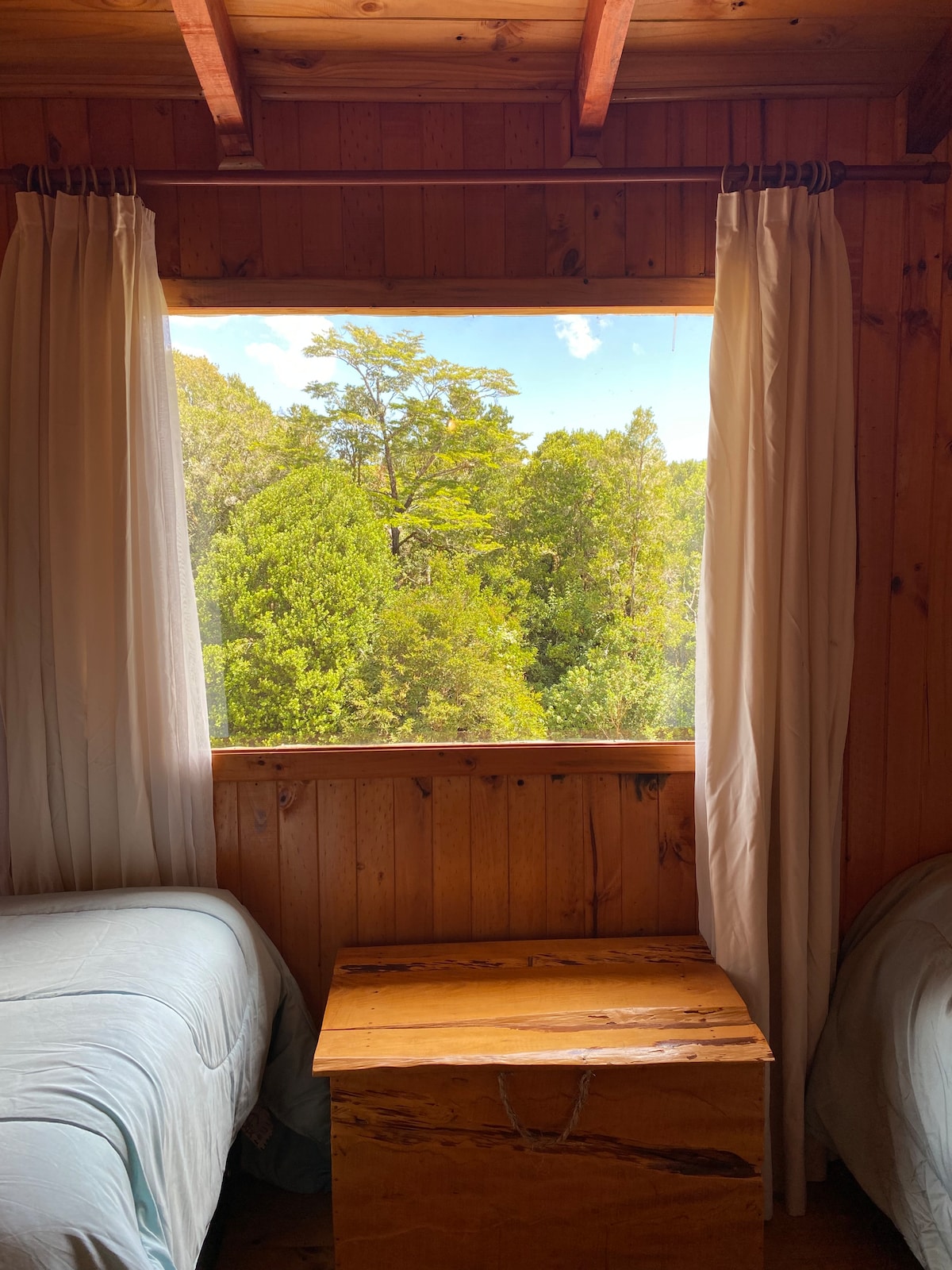Sie werden in einer kleinen Hütte für 1 oder 2 Personen übernachten, die so konzipiert ist, dass sie eine preiswerte, komfortable und freundliche Unterkunft bietet, die über das Wesentliche für Ihren Aufenthalt verfügt, ideal für Reisende aus der ganzen Welt, die einen Ort suchen, an dem sie sich entspannen und sich darauf vorbereiten können, die wunderschönen Landschaften und Wanderwege von Chiloé zu erkunden. Die Hütte verfügt über ein offenes Zimmer (2-Sitzer-Bett), Bad, Küche und WLAN (schwaches Signal). Wir halten den TV-Service nicht für wesentlich. Privatsphäre und Ruhe.