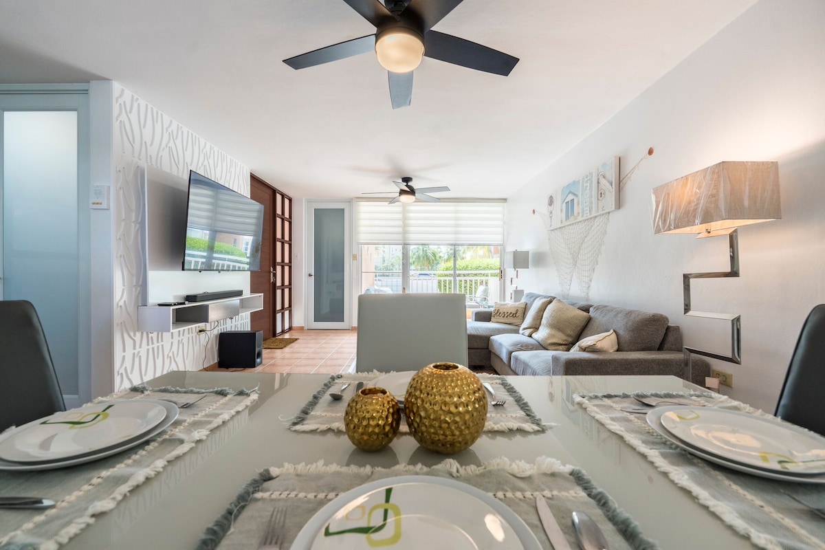 Komm und übernachte in dieser entspannenden und gemütlichen Unterkunft! Genieße die Aussicht und Geräusche des atemberaubenden Atlantiks. Nur wenige Schritte vom Ufer entfernt, ist diese Wohnung der perfekte Rückzugsort. Die Villa ist 25 Minuten vom Flughafen SJU entfernt; ein Mietwagen wird dringend empfohlen, um sich fortzubewegen. Gartenwohnung, 1BR mit 2 Pools und direktem Zugang zum Strand. Ein komfortables Wohnzimmer, alle Räume mit Klimaanlage , 1 Badezimmer, WLAN , Smart-TVs in allen Zimmern und bewachten Parkplätzen. Maximal 5 Personen in der Wohnung Keine Partys erlaubt
