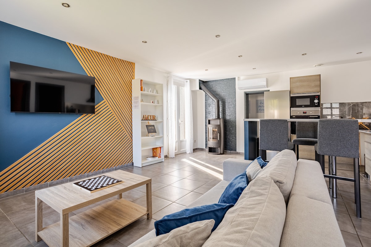 Nach 6 Monaten Arbeit, um Ihnen immer mehr Komfort zu bieten, freue ich mich, Sie in diesem atypischen Haus von 100 m² begrüßen zu dürfen, das ideal für Familienaufenthalte ist und im Jahr 2020 renoviert wurde und den Charme des 19. Jahrhunderts mit modernem Komfort verbindet. Es ist klimatisiert und bietet 4 große Schlafzimmer mit TV auf 3 Etagen und eine herrliche Dachterrasse. Das Hotel liegt im ruhigen Viertel Montferrand, 200 m von der Straßenbahn entfernt, und Sie erreichen das Stadtzentrum in 10 Minuten. Ideale Kapazität: 6 bis 8 Personen.