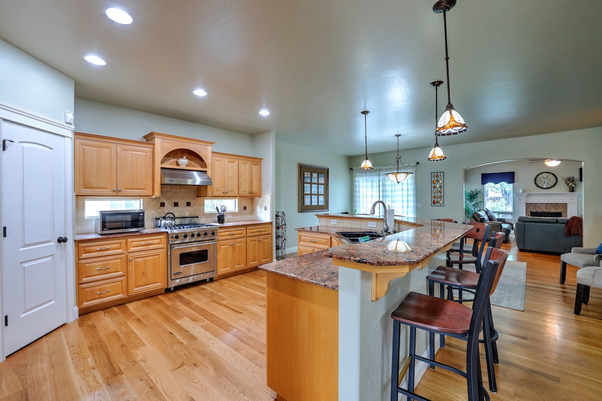 Dieses Haus ist ideal für Familientreffen oder ein lokales Turnier! Großer Bereich im Obergeschoss mit Smart-TVs und Spielen, offener Grundriss mit mehreren Bonusbereichen. Das Haus verfügt über einen eingezäunten Hinterhof und zwei Terrassen mit einem Gasgrill. Romantischer Kamin im Hauptschlafzimmer mit Klauenfußwanne im Badezimmer. Voll ausgestattete Gourmet-Küche mit Viking-Geräten, Kaffeemaschine und Starbucks-Kaffee! Das Hotel liegt in einer ruhigen Meridian-Gegend mit einfachem Zugang zu Cafés und Einkaufsmöglichkeiten. Wir behandeln unsere Gäste gut!