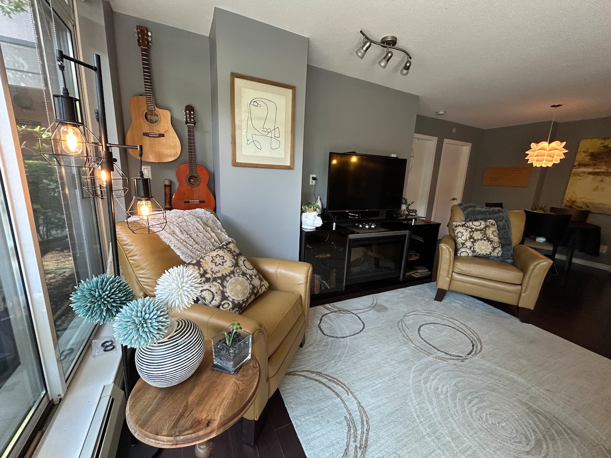 Genieße eine stilvolle Unterkunft in günstiger Lage. Du bist 8 Blocks von Roger's Arena, 6 Blocks vom Skytrain, 3 Blocks von der Seawall und nur wenige Schritte von den coolsten Underground-Bars, angesagten Restaurants, progressiven Kunstgalerien, Musikstätten und dem Nachtleben der Stadt entfernt. Dies ist ein großartiger Ort für einen Feinschmecker, kreativen, Radfahrer oder urbanen Entdecker, der ein einzigartiges Erlebnis sucht. Klimaanlage, voll ausgestattete Küche, sicherer Parkplatz, Waschküche in der Suite, Innenhof, Aufzug, Geschirrspüler, TV, Sonos, Schreibtisch, Ruhe.