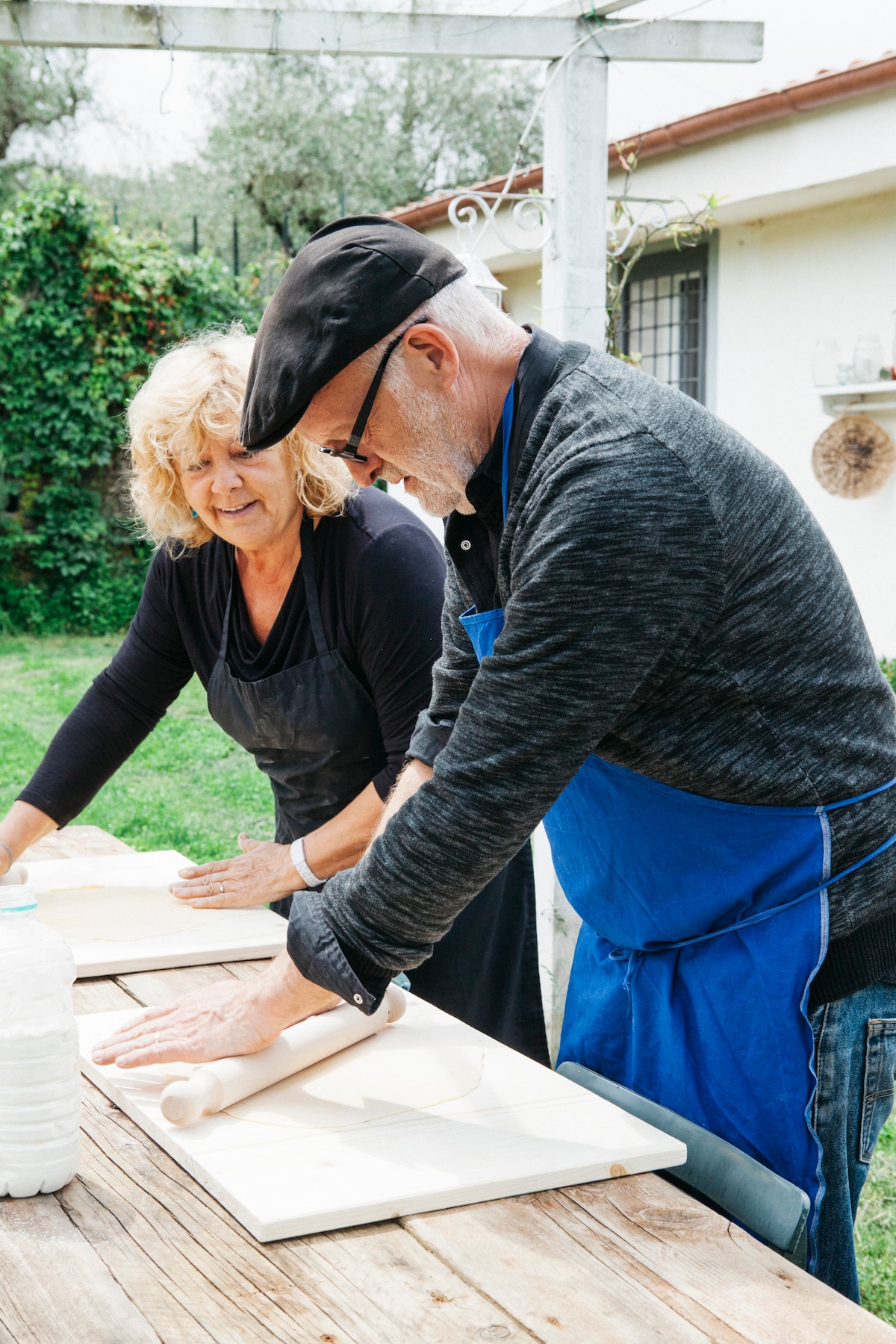 Bereite gefüllte Nudeln und vegetarische Gerichte zu und speise dann unter der Pergola.