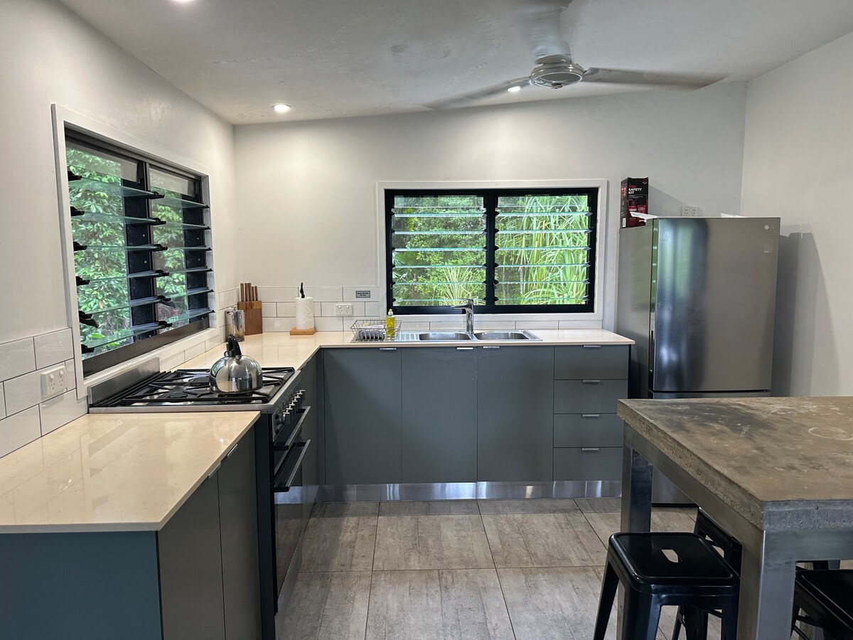 STONEWOOD VIEWS One of the most modern and contemporary holiday homes in the Daintree. Located in a quiet no through road hidden amongst the worlds oldest rainforest. 15min north of the Daintree ferry We have a porta cot available for infants. We can help you book tours such as Ocean Safari, Jungle surfing and croc spotting tours. Starlink/ wifi.