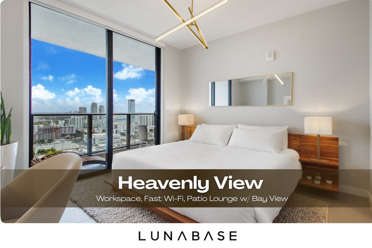 Experience Heavenly View by Lunabase, a modern 34th-floor luxury condo in downtown Miami, less than 5 miles from South Beach. Perfect for remote workers and long stays, it features smart tech, high-speed WiFi, a laptop-friendly workspace, spacious private patio, designer furnishings, king bed & air mattress. Enjoy resort amenities: gym, yoga, squash, spa, 3 pools, hot tub & sauna, washer and dryer in condo. Free parking | 30-day stay required.