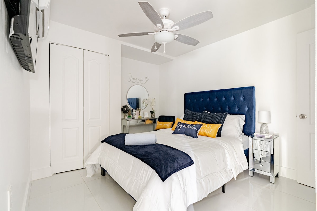 Willkommen in unserer privaten gemütlichen Gästesuite mit einem großen Bett! Das Studio ist komplett renoviert und verfügt über ein eigenes Bad und eine Küchenzeile. Inklusive kostenlosem Parkplatz, WLAN, Klimaanlage, Smart-TV, begehbarem Kleiderschrank/Dusche. Zentral gelegen in einem schönen, ruhigen Viertel. 5 Minuten vom CityPlace Doral; 10 Minuten vom internationalen Flughafen Miami; 15 Minuten von Stränden, Brickell/Downtown, Wynwood und Miami Design District entfernt. HAUSTIERE OK! ZUSÄTZLICHE GEBÜHR VON $ PRO HAUSTIER. MAX. 2 HAUSTIERE.