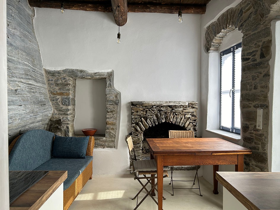 Giacomo Home ist ein einladendes Anwesen in atemberaubender Lage. Sie wurde im traditionellen kykladischen Stil erbaut und verfügt über beeindruckende, mit Stein verkleideten Wänden und Hektar Platz. Die Einfachheit der architektonischen Gestaltung und der sauberen Oberflächen sind ein zentraler Punkt der architektonischen Zusammensetzung und Funktionalität der Räume. Die beiden Schlafzimmer der Häuser (Cocomat-Schlafalter) bieten dir coole, ruhige Zufluchtsorte, die dich beim Schlafen beruhigen.