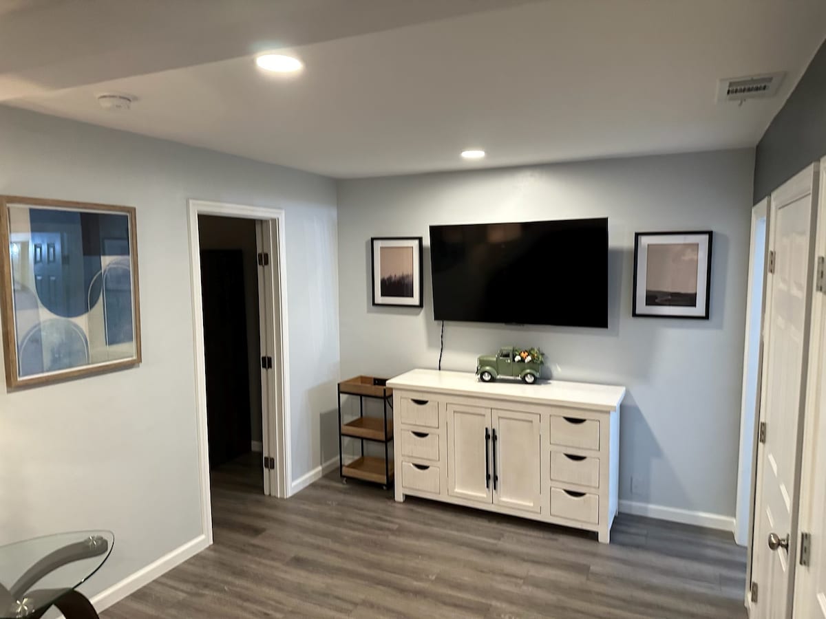 Bright Side Studio ist ein privater, durchdacht gestalteter Raum, der für Komfort und Leichtigkeit geschaffen wurde. Perfekt für Geschäftsreisen oder süße Wochenendausflüge, das Studio ist ein Raum wie kein anderer. Im Inneren findest du eine geräumige Aufteilung mit einer voll ausgestatteten Küche, einem bequemen Bett, hochwertiger Bettwäsche und einem voll ausgestatteten Badezimmer mit frischen Handtüchern. Das Design ist hell und modern mit warmen Akzenten. Gleich gegenüber der Straße befindet sich ein wunderschöner Wanderpark, der sich perfekt für frische Luft und Entspannung während deines Aufenthalts eignet.