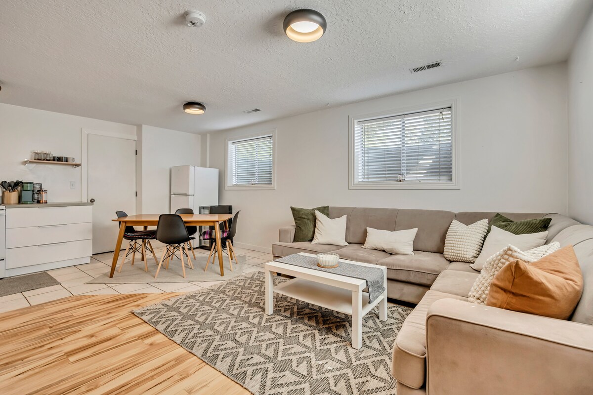 Beautiful newly finished basement apartment in a quiet neighborhood with a relaxing private patio. Fully serviced kitchen, leather recliner couch and love seat, new 55” LED television with Roku and Netflix . Quick and easy access to Utah's world famous Ski Resorts and Downtown Temple Square as well as some of the best skiing, hiking and biking in the Rocky Mountains. Many Great restaurants and shopping within walking distance, as are UTA Trax and Frontrunner (public transportation).