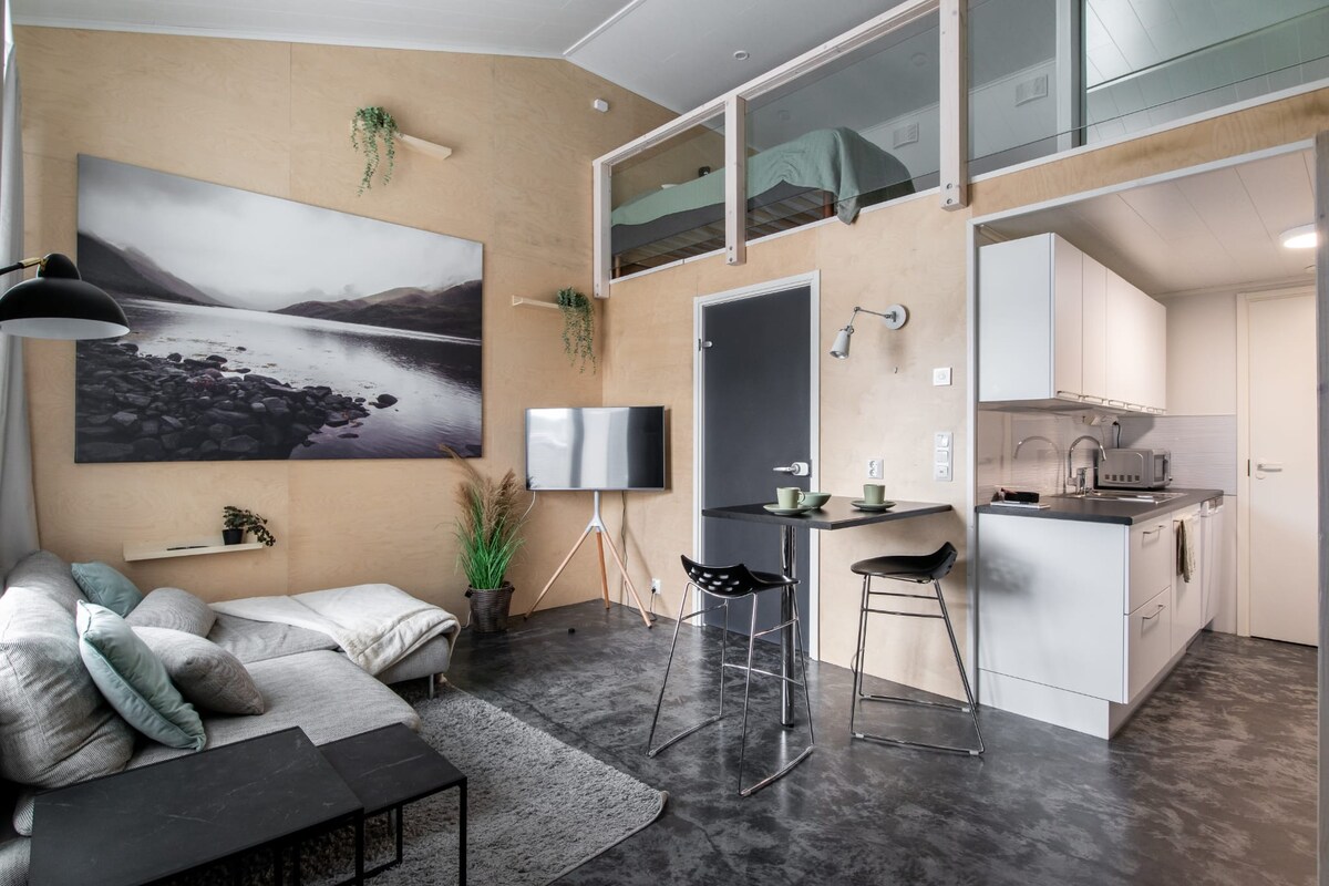 Diese besondere Unterkunft befindet sich im Zentrum, also in Kotkansaari, dem alten Hafen. Nur einen Steinwurf entfernt befinden sich die Satama-Arena, Vellamo und der neue Xamk-Campus. Der Marktplatz und das Einkaufszentrum Pasaati sind ca. 400 m entfernt. Dieses kleine Citypesä erreichen Sie bequem mit dem Auto und dem Zug. Dank des eigenen Eingangs und Codeschlosses können Sie sich flexibel nach Ihrem eigenen Zeitplan einchecken.