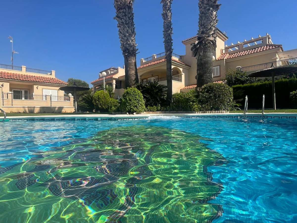 Kürzlich renoviertes Haus mit 3 Schlafzimmern, in Strandnähe, in einer ruhigen Gemeinschaft mit Garten und Pool. Voll ausgestattete Küche, vordere Terrasse mit Sonnenschutz mit Blick auf den Gemeinschaftsgarten. Klimaanlage in allen Zimmern, Kamin für den Winter. 5 Minuten vom Strand entfernt. Im Stadtzentrum mit mehr als 20 Restaurants zu Fuß erreichbar und 15 Golfclubs mit dem Auto erreichbar. In der Nähe von 3 monumentalen Städten, 2 Wasservergnügungsparks, Thermalwasserbädern, Naturparks San Pedro und Calblanque...