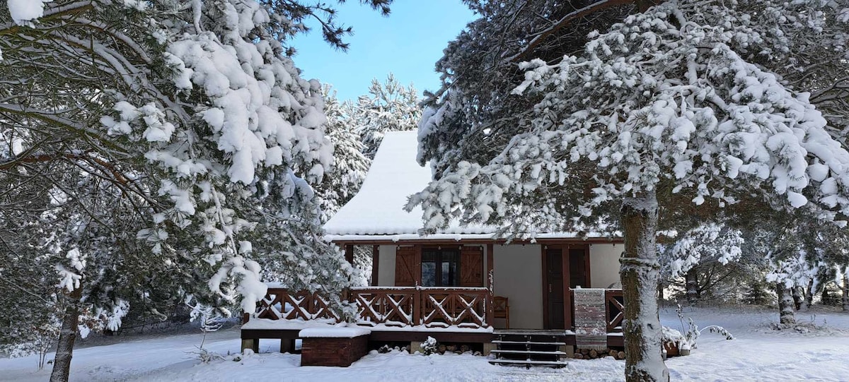 Wir bieten ein ganzjähriges hölzernes Gästehaus im Elbląg Upland Landscape Park. Wir haben viel Zeit damit verbracht, die Ruhe und Magie des Waldes zu genießen. Wir haben es für 2 Personen eingerichtet, die sich wohlfühlen. Wir bieten ein Schlafzimmer, ein Wohnzimmer mit einer Küche und eine überdachte Terrasse. Es ist ein Paradies für Introvertierte oder der perfekte Ort, um mobil in der Natur zu arbeiten. Mache diesen Ort im Wald zu deinem privaten Zufluchtsort, einem Ort, an dem sich die Zeit verlangsamt…
