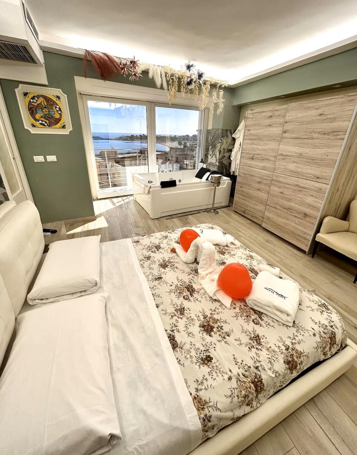 Wohnung von 70 qm innen und 20 qm Panoramaterrasse mit Meerblick, luxuriös eingerichtet und mit wertvollen Kunstwerken bereichert. Die Gemälde und lokalen Manufakturen wie Mohrenköpfe und Majoliken werden Sie im Herzen der sizilianischen Tradition willkommen heißen, jedes Zimmer ist klimatisiert und in jedem Detail gepflegt, mit SMART TV 75' QLED im Hauptraum in einem wunderschönen Rahmen mit atemberaubender Aussicht. Garage auf Anfrage, bei der Buchung zu bestätigen (€ 15,00 pro Tag).