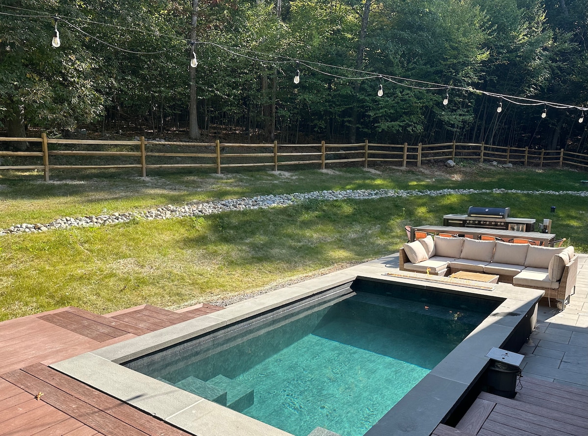 Suchst du einen Kurzurlaub in den Bergen? Entfliehe unserem Poconos Cottage, das modernen Komfort und rustikalen Charme in einer privaten, bewaldeten Umgebung nahtlos verbindet. Erkunde nahegelegene Wanderwege, gönne dir lokale Restaurants, fahre Ski, fische, boote oder genieße einfach die Ruhe der Natur, während du am Feuer sitzt! Außerdem genießt du schnelles WLAN, Klimaanlage und einen Gelkamin im Innenbereich.