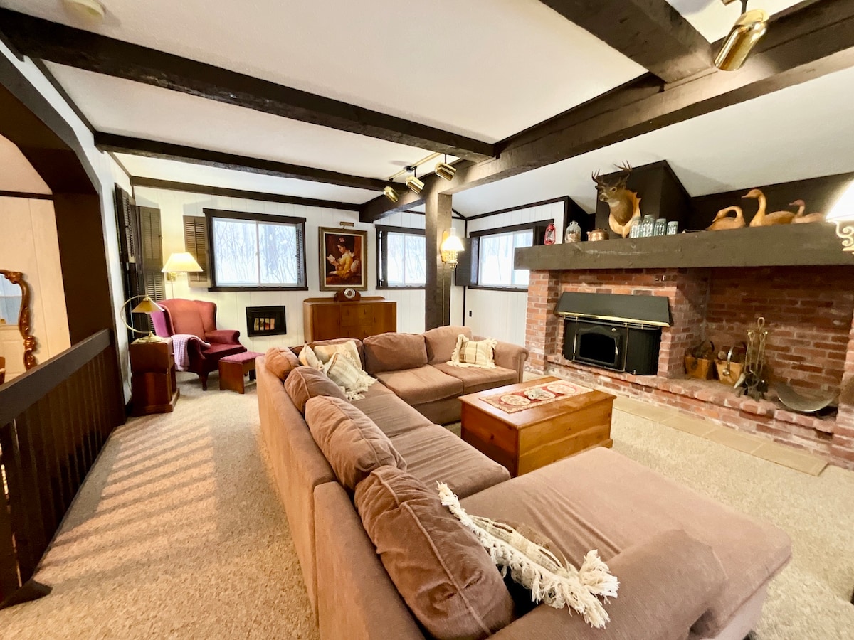 Große 3-stöckige Oase, privater 2 Hektar großer Wald, voll ausgestattete Küche, 2 Wohnzimmer, Zimmerbar, Spielzimmer mit Billardtisch, 4 Schlafzimmer, 3 Bäder, umlaufende Veranda, eingebettet in ein Landschaftsgelände mit Whirlpool, Feuerstelle (Holz wird bereitgestellt), Holzofensauna mit Sitzecke und abgeschirmt im Pavillon. Diese Unterkunft bietet im Winter einfachen Zugang zum Skifahren auf Sam's Ski Hill und im Sommer zum Radfahren auf Radwegen. 10 Gehminuten vom Eagle Lake entfernt. ATV/Schneemobil. EV-Schnellladestation verfügbar!
