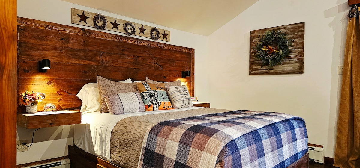 Entspanne und erfrische dich in unserer Studiowohnung nach einem aufregenden Tag auf der Piste, Wildwasser-Rafting auf dem Hudson oder einer weniger anstrengenden Beschäftigung. Dieses gemütliche Refugium, eingebettet in Holz, fühlt sich ein wenig an, als würde man in einem Baumhaus schlafen. Das Hotel liegt an einer ruhigen und friedlichen Straße mit Blick auf den Gore Mountain und den Hudson River, 5 Minuten vom Fuß des Gore Mountain Skigebiets und 3 Minuten von der Innenstadt von North Creek mit Restaurants und Einkaufsmöglichkeiten entfernt. Dein Adirondack-Abenteuer beginnt und endet hier!