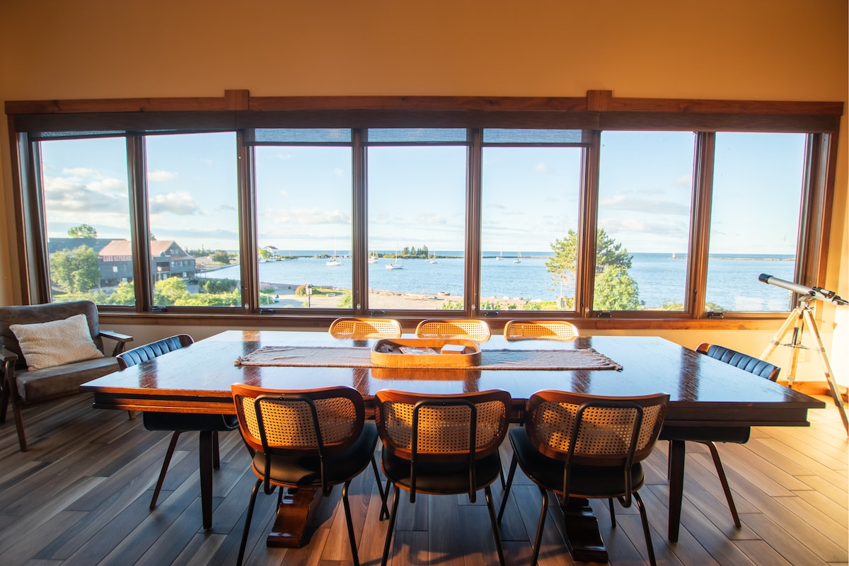 Wake up to the sunrise over Lake Superior. Listen to crashing waves or enjoy a winter ski retreat. This bright space offers incredible views and sits on a stunning, rocky shoreline. Spend the day reading by the fire or venture to nearby trails for a day of skiing, snowshoeing, and hiking. Just miles from Lutsen Ski Resort, sweet restaurants, a winery, and more. End the day in the private jet tub or enjoy the building's hot tub, sauna, outdoor fire pits, and panoramic deck.