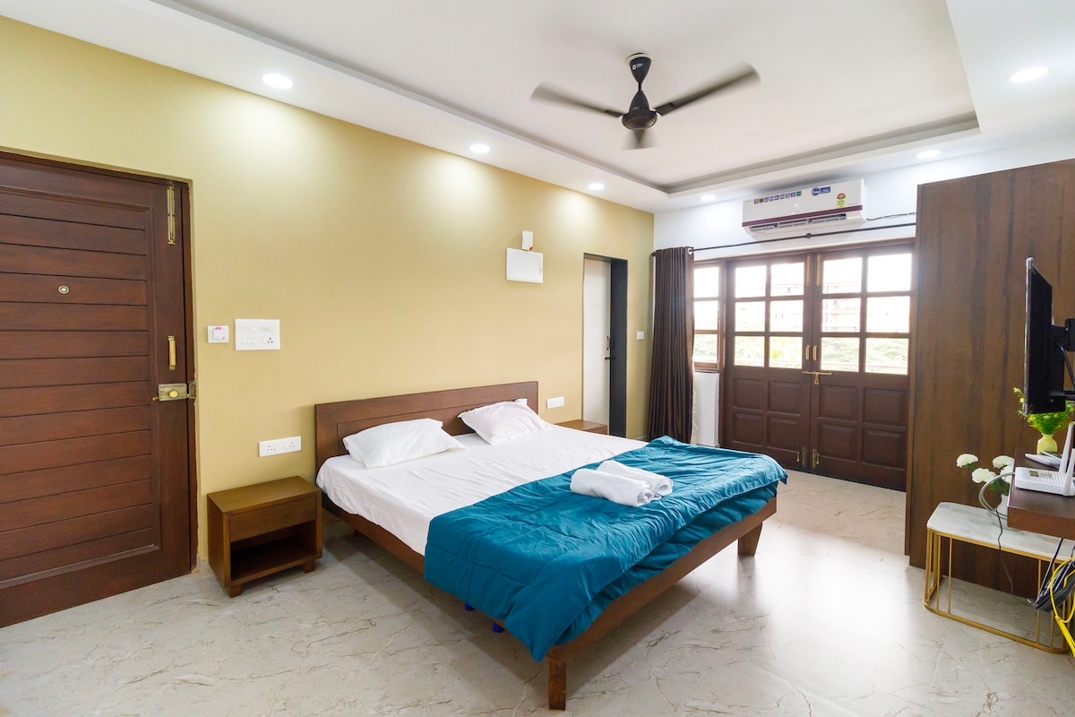 Dein Panjim-Kurzurlaub erwartet dich! Übernachte in einer erstklassigen, voll möblierten 2-BHK-Wohnung in Panjim, nur 800 m (10 Gehminuten) vom Miramar Beach entfernt. Genieße voll klimatisierte Zimmer, Balkon, WLAN, Pool und eine moderne Küche. Ideal für Kurzurlaube oder Arbeitsaufenthalte Die Unterkunft liegt in einer sicheren Wohnanlage mit Sicherheit rund um die Uhr und einfachem Zugang zu Cafés, Einkaufszentren, wichtigen Touristenattraktionen und den berühmten schwimmenden Casinos der Stadt (10 Minuten Fahrt). Schlafplätze für 4. Handtücher, Pflegeprodukte, Grundgewürze sind enthalten.