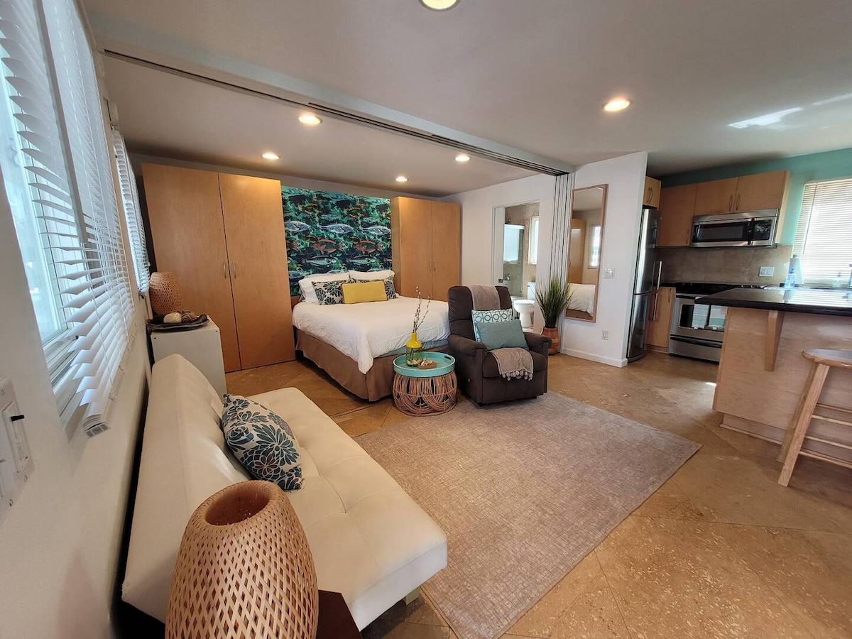 1 Bedroom, 1 block to the bay, 6 blocks to the waves, walking distance to local restaurants, bars, and shopping. Rental has everything you need to pack light (beach towels, beach chairs, full kitchen, professionally cleaned rental, etc.) I am an Airbnb Superhost that has hosted over 300+ vacations, I have a 5 star rating, and have never cancelled a booking. This is a must see! Please note that parking is NOT available, but there is free street parking.