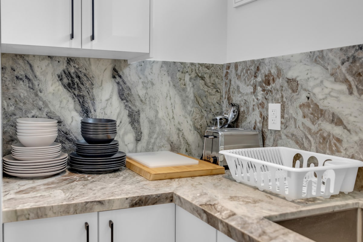 -Neu renovierte moderne Keller-Suite mit separatem Eingang - Komplette Einheit: voll private Küche, Badezimmer und Waschküche - Kostenlose Parkplätze an der Einfahrt Die Gegend gilt als eines der schönsten Viertel von Mississauga, in der Nähe von Toronto, Oakville und Lakeshore - 20 Minuten Fahrt zum internationalen Flughafen Pearson -15 Minuten Fahrt/40 Minuten Bus zum Square One - 8 Minuten Fahrt/30 Minuten Bus zur UofT Mississauga, Sheridan College - 5 Gehminuten bis zu Cafés, Geschäften, Restaurants, Gemeindezentrum - Einfacher Zugang zu hw 403 & QEW