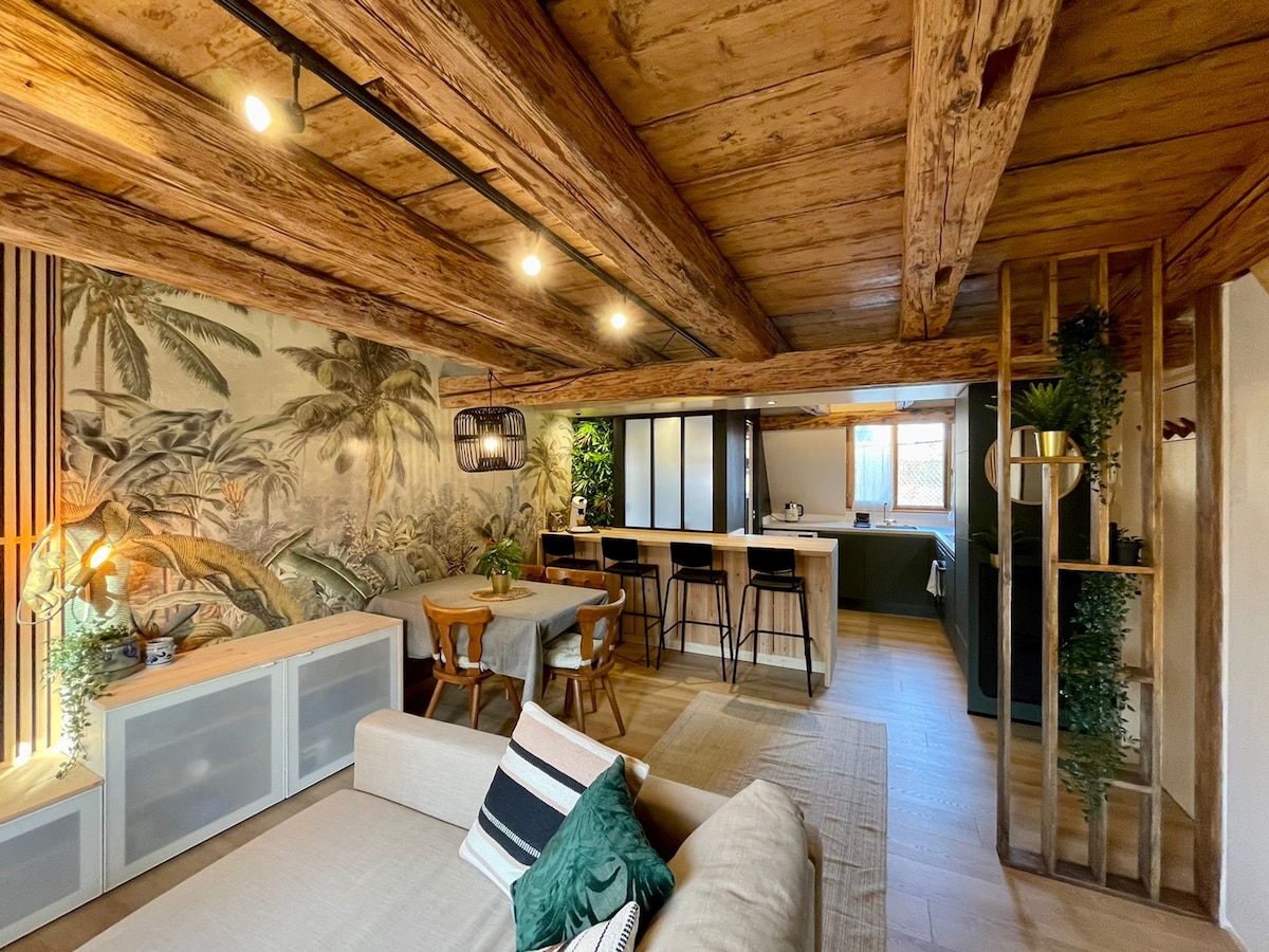 Erleben Sie eine romantische Auszeit in unserem charmanten 4 Sterne-Loft im Herzen von Barr. In einem ruhigen Innenhof eines elsässischen Fachwerkhauses erwartet Sie eine großzügige und komfortable Unterkunft mit offener voll ausgestatteter Küche, gemütlichem Wohnbereich, Queensize-Bett, ebenerdige Dusche mit separatem WC, Ankleide, Klimaanlage und Smart-TV. Ein Tandem sowie eine Ladestation für E-Bikes, dazu eine private Garage. Ein stilvoller und herzlicher Ort für besondere Momente zu zweit.