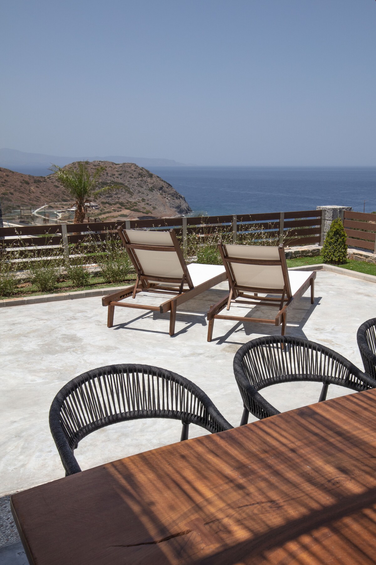 Entspannter Luxus, inspiriert von Kretas roher Naturschönheit. Das Anwesen befindet sich in einem üppigen mediterranen Garten mit Blick auf die Bucht von Mochlos und verbindet elfenbeinfarbenen Beton, lokalen Stein und klare Linien im Einklang mit der Natur. Die Innenräume sind in beruhigenden Tönen gehalten, mit natürlichen Möbeln und kuratierter Kunst ausgestattet. Mit drei Schlafzimmern, drei Badezimmern, einer Badewanne im zweiten Stock mit Meerblick und einer Kücheninsel im Freien bietet es einen mühelosen, ruhigen Rückzugsort am Meer.