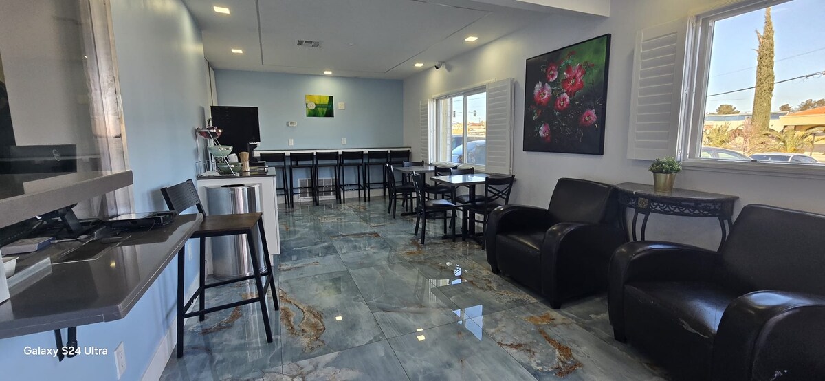 Entspann dich, tade deine Akkus auf und fühle dich wie zu Hause in einer modernen, sauberen, geschmackvoll eingerichteten und sicheren Unterkunft in Rosamond, Kalifornien. Die Unterkunft bietet eine breite Palette von Annehmlichkeiten wie TV, tägliche Zimmerreinigung, Nichtraucherzimmer, Feuerlöscher, Klimaanlage, Sitzbereich und CCTV-Kameras in öffentlichen Bereichen.
