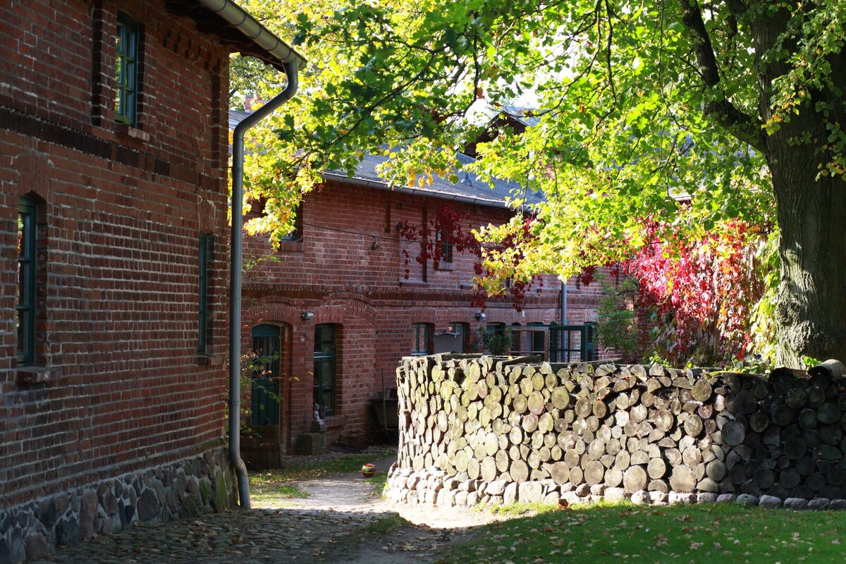 Genieße die Ruhe und Geborgenheit dieser alten Gemäuer. Umgeben von uraltem Baumbestand in der mecklenburgischen Seenplatte. Deine Ferienwohnung liegt im 1. Stock und wurde behutsam saniert. Wir haben die alten Lehmfachwerke wieder aufgemauert, die uralten Dielen freigelegt und an die Wände kam nur feinste Lehmfarbe. Abgerundet wird das HideAway durch einen kleinen gußeisernen Kamin für die Abende und eine private Sauna am Feldrand ... Wir lieben Kinder 🧡🌟 4 Katzen und 1 Hund leben am Hof ;-)