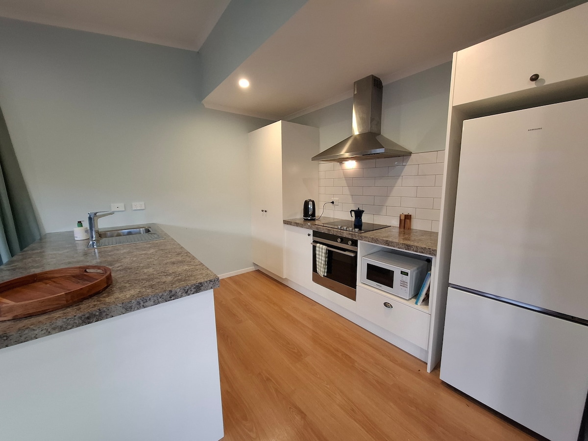 Modern mit eigenem Whirlpool. Unabhängige Luxus-Gästesuite auf dem Land. Ein privater Kurzurlaub, ein romantisches Wochenende oder ein Ausgangspunkt für dein Fiordland-Erlebnis. Etwa 5 Fahrminuten von der Stadt entfernt und 320 m über dem Meeresspiegel mit atemberaubendem Bergblick auf den Fiordland-Nationalpark. Öffne die große Schiebetür zu deiner privaten Terrasse. Genieße einen schönen Sonnenuntergang oder betrachte die Sterne im Whirlpool in der privaten Gartenumgebung. Perfekt für Paare oder Alleinreisende.