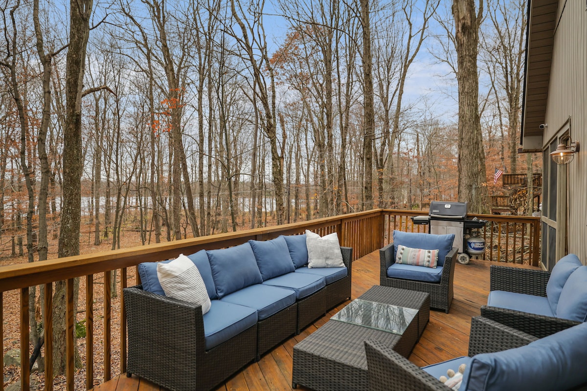 UPDATE: HERBSTFARBEN SIND DA! Entfliehe in unser ruhiges Chalet am See, eingebettet im Herzen der Poconos. Genieße einen atemberaubenden Blick auf den See von allen Hauptwohnbereichen aus, zusammen mit einem privaten Whirlpool für ultimative Entspannung. Egal, ob du einen romantischen Rückzugsort, einen Kurzurlaub mit Freunden oder ein Familientreffen planst, unser Chalet bietet die perfekte Balance aus Ruhe, Komfort und natürlicher Schönheit — ein idealer Ort, um sich zu entspannen, sich wieder zu verbinden und bleibende Erinnerungen in den Pocono Mountains zu schaffen.