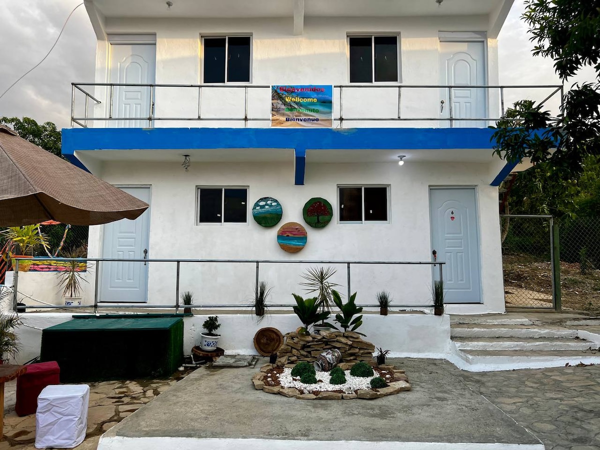 Relájate con toda la familia en este lugar lleno de paz. Es una casa con dos habitaciones , con aire acondicionados y un baño, completamente equipada a 15 mins de la playa buen hombre y 25 min del morro montecristi. Con un ambiente de total tranquilidad para la familia. Bastante espaciosa y con espacios al aire libre para recreación. Además en temporadas disfrutas de los árboles frutales😁
