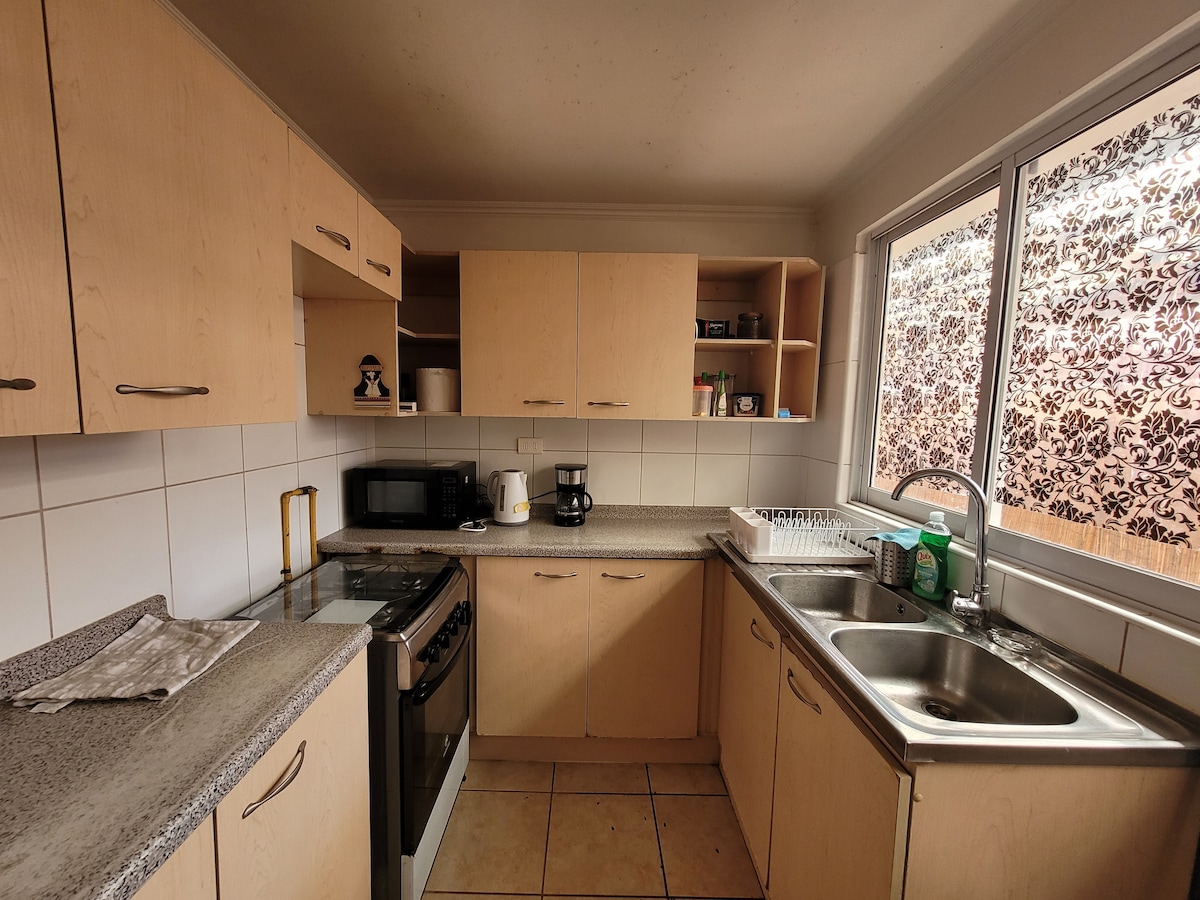 Gemütliche Wohnung in der Nähe des Zentrums von Ovalle. Ideal, um sich zu Hause zu fühlen, wenn Sie unterwegs sind. Sie verfügt über 3 Schlafzimmer, 2 mit zwei Betten von 1 und ein drittes mit einem Bett. Zwei geräumige Schränke für dich, sobald du ankommst. Wir haben eine voll ausgestattete Küche und eine umzäunte Loggia. Auch mit WLAN-Verbindung und Kabelfernsehen. Sie befindet sich im dritten Stock und du kannst den entsprechenden Parkplatz kostenlos nutzen. Die Eigentumswohnung hat rund um die Uhr einen Sicherheitsdienst.