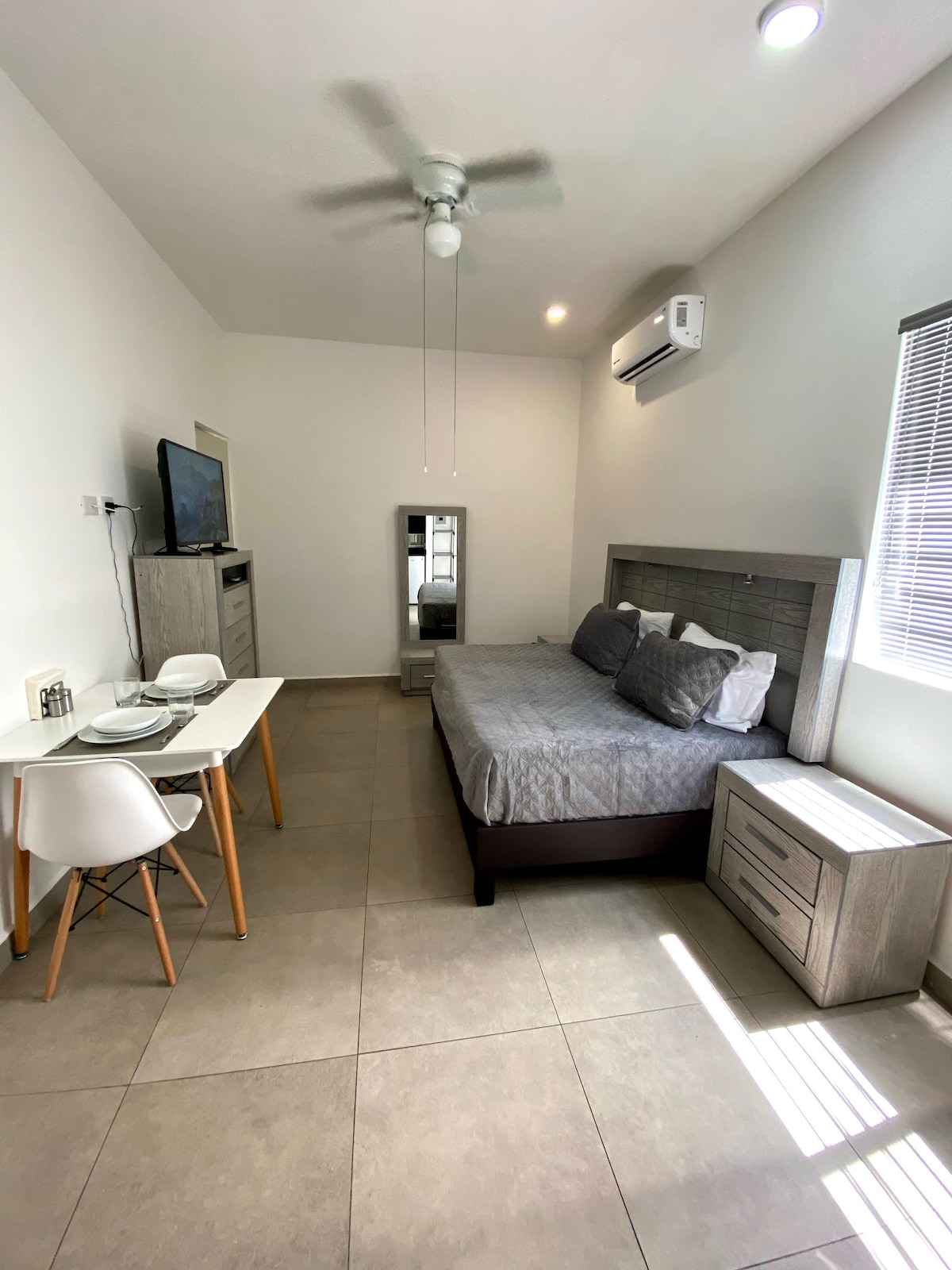 Willkommen in unserer modernen und eleganten Master-Suite in privilegierter Lage. Diese Suite wurde für deinen Komfort entworfen, mit einem Kingsize-Bett und einem großen Wohnzimmer, damit du dich wie zu Hause entspannen kannst. Die Suite wurde sorgfältig eingerichtet, um dir ein luxuriöses und komfortables Erlebnis zu bieten. Alles ist makellos sauber und bereit, damit du deinen Aufenthalt genießen kannst. Die Lage ist perfekt, in der Nähe der besten Restaurants, Geschäfte und medizinischen Zentren.