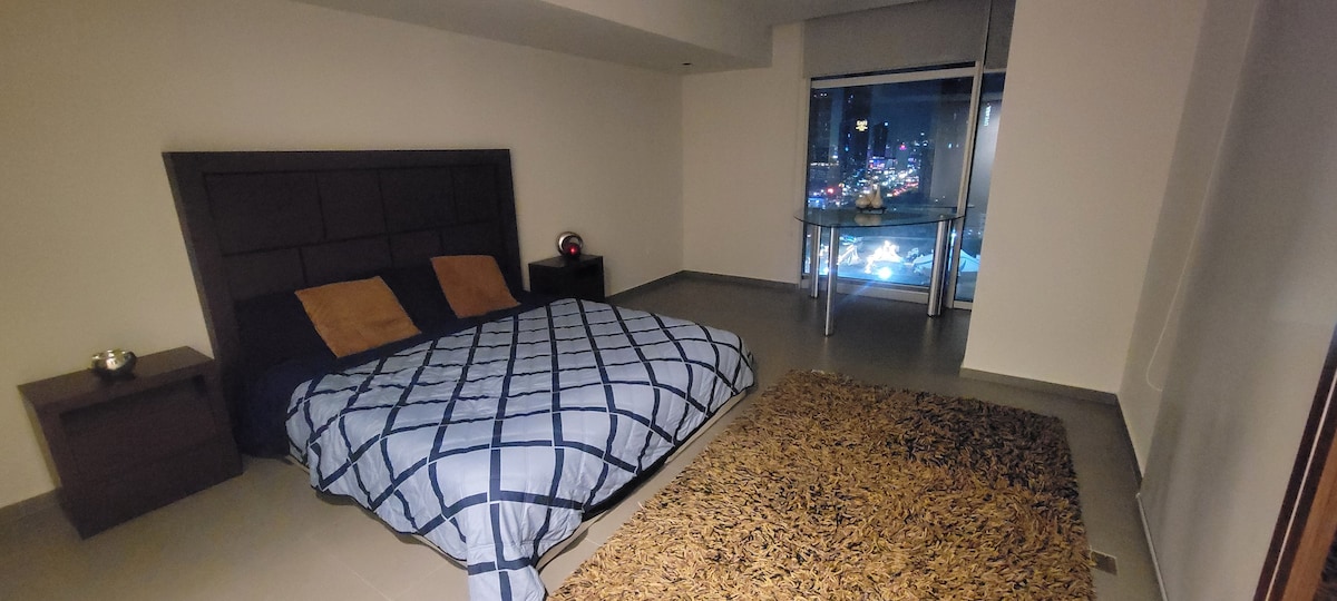 Willkommen im Distrito Armida! Übernachte im Torre Acacia, einem unserer luxuriösesten Airbnbs in San Pedro. Loft mit Doppelbett und Doppelschlafsofa, ideal für 3 Personen, mit privilegierter Aussicht. Sie verfügt über 100-Mbit/s-WLAN, Smart-TV, Klimaanlage (warm/kalt) und einen privaten Parkplatz. Das Gebäude bietet Sicherheit rund um die Uhr, einen Pool und eine unschlagbare Lage, nur wenige Schritte vom Fashion Drive und dem Krankenhaus Ángeles Valle Oriente entfernt.