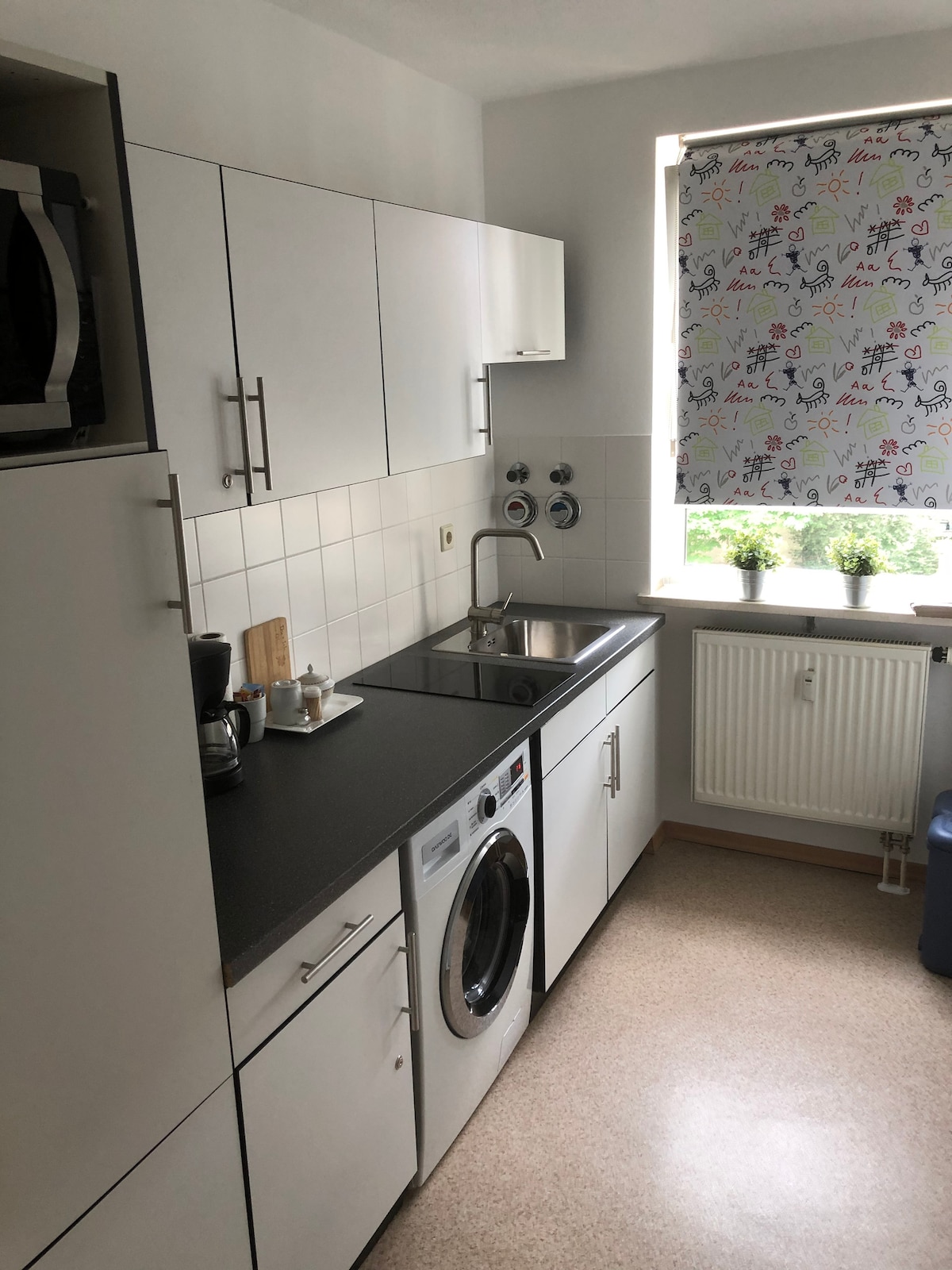 Apartment/Einraumwohnung mit separatem Hauseingang. Der helle Wohnbereich bietet eine stimmungsvolle Beleuchtung, 1 Doppelbett, Essecke, TV-Flachbildschirm mit kostenfreien WLAN, SAT, NETFLIX, Garten & Terrassenzugang. Die Küche- E-Herd, Backofen, Kühlschrank/Froste, Kaffemaschine, Toaster, Wasserkocher, Geschirr, Grundgewürze Im Flur befindet sich ein großer Kleiderschrank mit Bügeleisen, Bügelbrett und Schuhregal. Bad -Dusche,WC, Föhn, Handtücher, Toilettenpapier, Seife Shampoo, Duschbadr