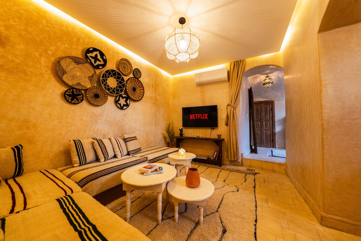 --- Welcome to your peaceful haven in the heart of Marrakech! A true oasis with a refreshing pool, a sunny rooftop, and a lush patio. Enjoy an exclusive stay in our riad, where tradition meets modern comfort. 📍 PRIME LOCATION. Nestled in an authentic and safe neighborhood, just steps away from the souks, museums, restaurants, cafés, and shops. You'll experience Marrakech like a local while staying close to the city’s best spots for dining, culture, and shopping.