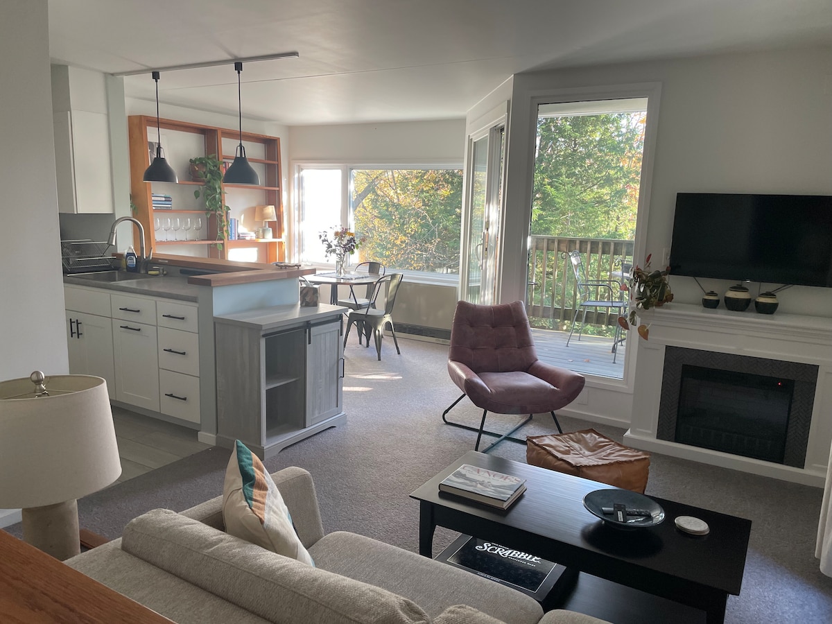 Ruhiges und friedliches Ferienhaus in einer wunderschönen Umgebung. Das Hotel liegt auf 6 Hektar neben dem Naturschutzgebiet Shelburne Pond und nur 15 Minuten vom Church Street Marketplace in der Innenstadt von Burlington entfernt. Genieße den Sonnenaufgang über den Hügeln hinter dem Ferienhaus und die Sonnenuntergänge über den Adirondacks im Westen. Setze dich auf die Stühle oder die Chaiselongue im privaten Garten und lausche den Vögeln oder entspanne dich nach einem Tag Skifahren oder Schneeschuhwandern in der Gemeinschaftssauna. (Die Sauna ist auf Reservierung verfügbar, um deine Privatsphäre zu gewährleisten.)