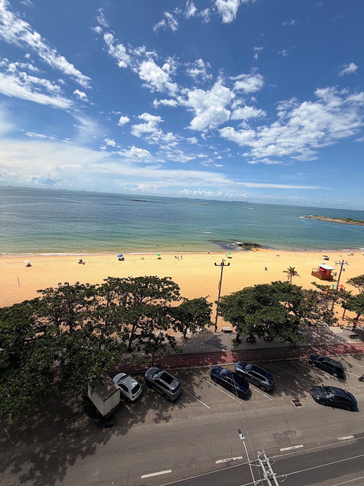 Geräumiges Zimmer, Wohnzimmer und Balkon, mit privilegiertem Blick auf das Meer, obere Etage, 50 m vom Strand entfernt. Smart-TV, der zwischen Schlafzimmer und Wohnzimmer mit Netflix geteilt wird, WLAN 360 Mbit/s. Private Garage. Poolbereich, Grill und Fitnessraum in der Wohnanlage. Mit einem charmanten und komfortablen Raum für Ihren Aufenthalt an einem der schönsten Strände der Stadt Vila Velha. Einfacher Zugang zu den verschiedenen Sehenswürdigkeiten der Stadt.