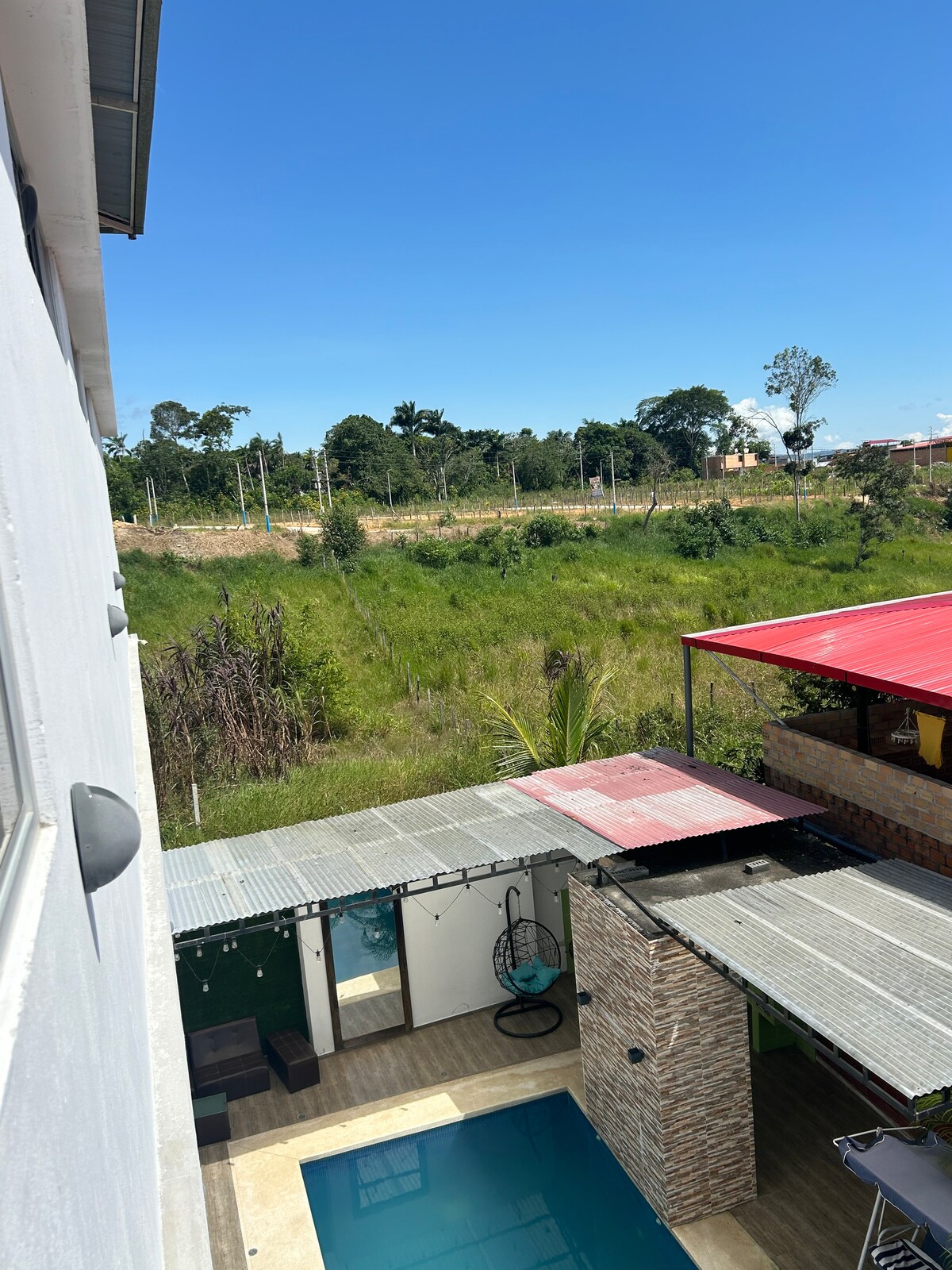 Casa de campo con piscina privada y hermosa vista al Morro de Calzada. Cuenta con 3 habitaciones, amplia cocina integrada al comedor y espacios verdes ideales para descansar en plena naturaleza. Perfecta para familias o grupos que buscan tranquilidad en Moyobamba.