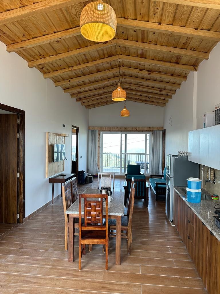 2BHK Holzhaus | Küche, Balkon, Himalaya