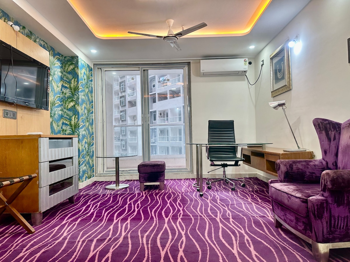 The flat is situated in a plush complex . It is located centrally close to all the restaurants/cafés/grocery stores. THERE IS A WORK STATION FOR WFH WITH HIGH SPEED INTERNET CONNECTIVITY. There is an COFFEE MAKER provided for your CAFFEINE FIX with GROUNDED COFFEE POWER. We have provided best quality pillows . The flat is equipped with all the necessary amenities. I am there to guide you if you require any help . And you can join me for a cup of coffee / tea over a chat if you have time.