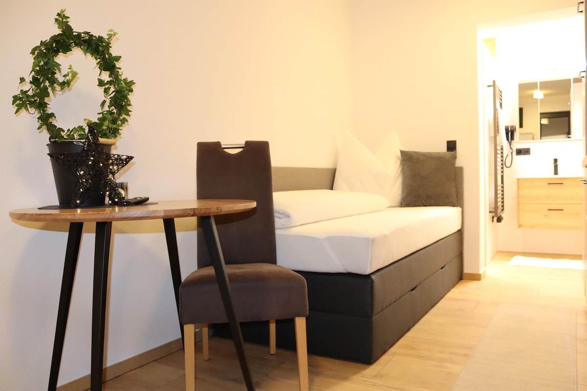 Ob allein oder zu zweit genießen, hier kannst du bequem auf Boxspring Matratzen schlafen, unter der Rainshowerdusche die Sorgen abwaschen und unkompliziert an-& abreisen. Die kleine 14m^2 Wohnung ist perfekt für Durchreisende, die eine saubere, stilvolle Unterkunft suchen und humane Preise voraussetzen. Das Zimmer mit Bad befindet sich im Keller eines Familienhauses, ist aber hanglagig und dadurch waldseitig mit Fenstern aussgestattet. Wäsche-,Hunde-, Frühstückservice möglich