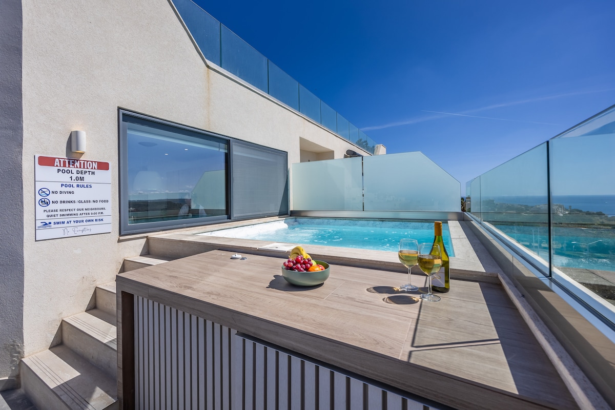 The Millennium Penthouse is a luxurious and beautiful place with several key elements that make it stand out: Natural Light and Open Air Space: The penthouse boasts an abundance of natural light, creating a bright and inviting atmosphere. The open-air space allows guests to enjoy the refreshing breeze and take in the surrounding views. Views: The penthouse offers sweeping country and sea views facing Malta and Comino, allowing guests to immerse themselves in the picturesque surroundings.