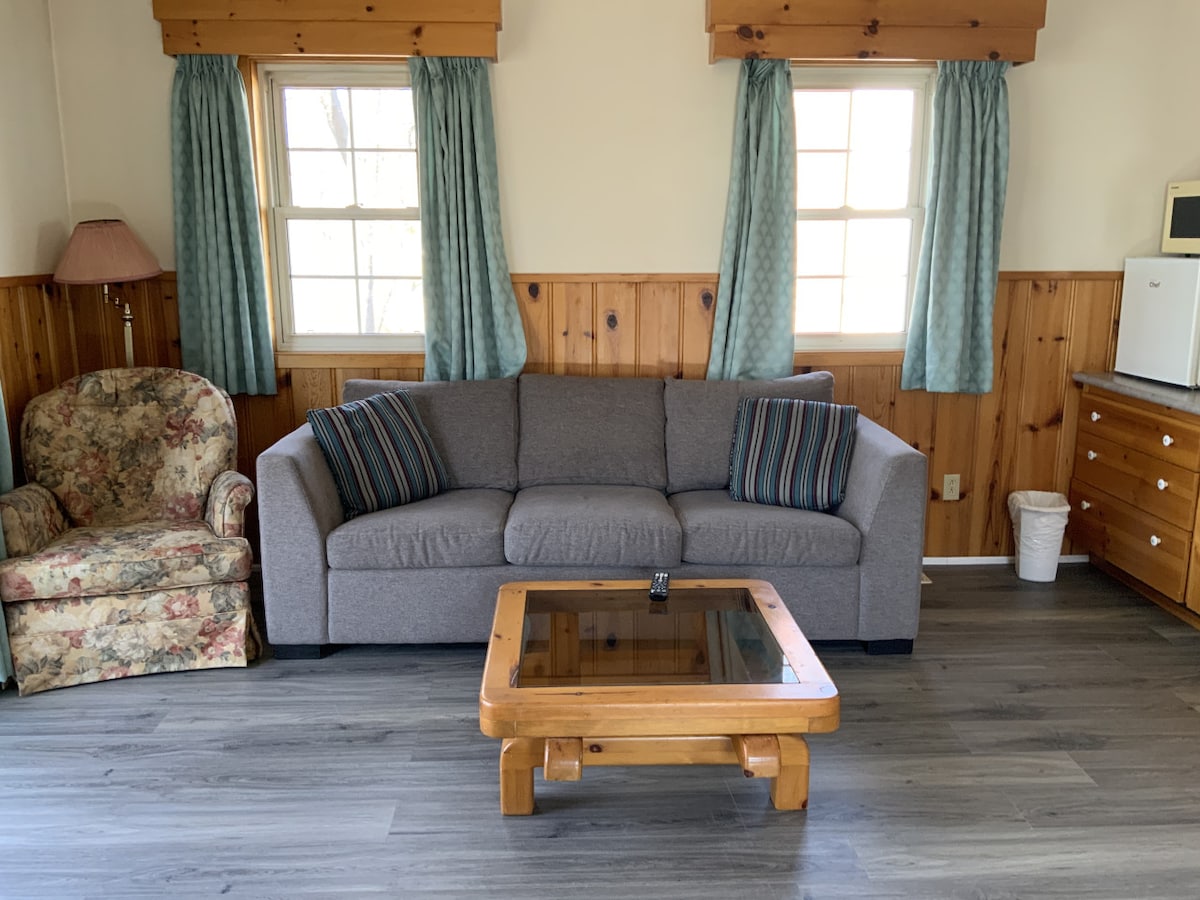 Enjoy a quite stay on a wooded lot in the heart of cottage country! The cabins are conveniently located within a short walking distance to the lovely town of Dorset, Kawagama Lake and Lake of Bays. The scenic lookout tower and hiking, snowmobiling and ATV trails are all at our doorstep! In town you can find restaurants on the water, Robinson's General Store and an LCBO. Come swim in the pristine waters, fawn over the fall colours or go for a rip on your snowmobile. It's all here!