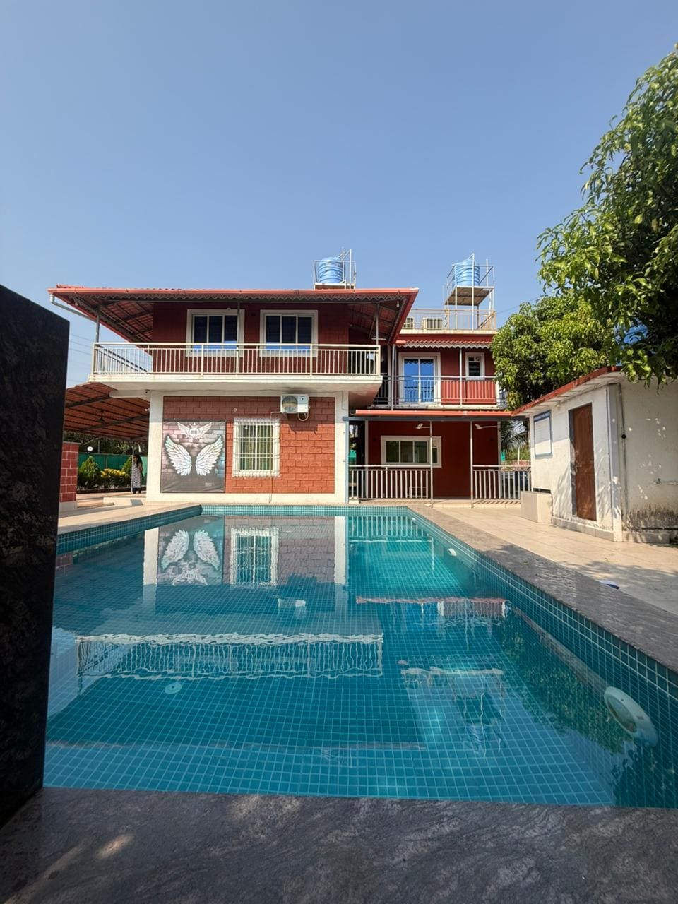 - Luxuriöse Villa, perfekt für einen Familienurlaub mit Pool. - Nur 10 Fahrminuten vom Strand entfernt. - Villa-Personal vor Ort für personalisierten Service. - Begrüßungsgetränk bei der Ankunft und Personal vor Ort für Service nach Bedarf - Induktionsherd/Mikrowelle in der Küche sowie Küchenutensilien verfügbar. - Das Hotel liegt im Herzen von Varsoli, Alibaug. - Lokale hausgemachte Meeresfrüchte und Grill gegen Aufpreis verfügbar. - Komfortables Kingsize-Bett mit zusätzlicher Bettwäsche mit hochwertiger Bettwäsche.
