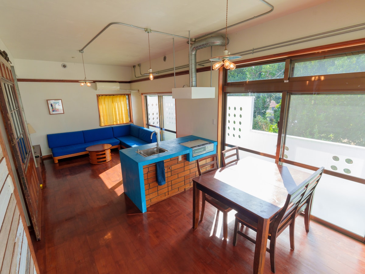 Meerblick · 3 Schlafzimmer · Geräumig 55 ㎡ Genieße einen atemberaubenden Meerblick von dieser Eckwohnung auf der obersten Etage. Diese geräumige 55 m² große Wohnung verfügt über 3 separate Schlafzimmer, perfekt für Familien oder Gruppen. Nur 3 Gehminuten vom Anchi Beach entfernt, der dafür bekannt ist, dass er eines der klarsten Gewässer auf Okinawas Hauptinsel hat. Im ersten Stock des Gebäudes findest du eine beliebte Eisdiele und ein japanisches Süßigkeiten-Café. Sie servieren auch Frühstück in einer gemütlichen Atmosphäre im japanischen Stil – sehr praktisch!