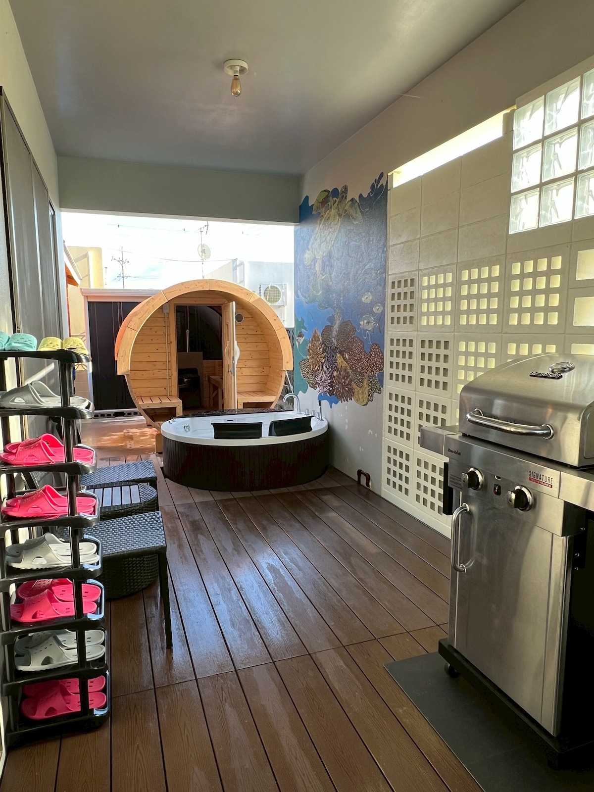 今帰仁村で遊びも癒しも満喫!バレルサウナ・ジャグジー・BBQコンロ完備の貸切一軒家/海まで約200m