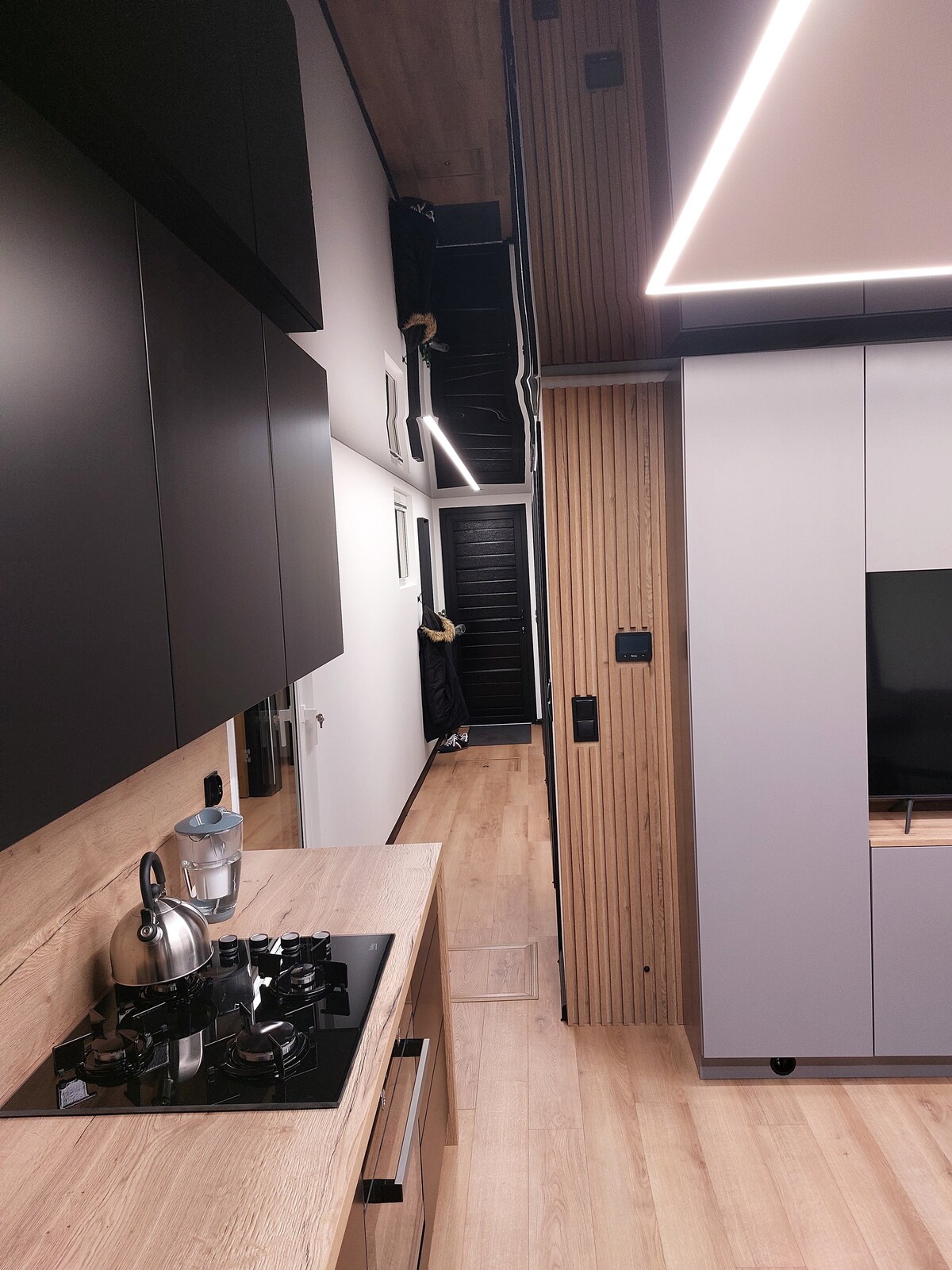 Ein ganzjährig gemütliches Haus auf dem Wasser – wo die Sonnenuntergänge atemberaubend sind Stell dir vor, du sitzt mit einer Tasse heißen Kaffees auf der Terrasse und der See reflektiert die letzten Sonnenstrahlen. Die Luft riecht nach Wald, die Stille wird nur durch den Gesang der Vögel unterbrochen, und die Zeit verlangsamt sich... So sieht ein Abend in unserem Ferienhaus am Pałuki-Wasser aus – ein Ort, an dem Natur, Ruhe und Design in perfekter Harmonie aufeinandertreffen. Der perfekte Ort, um eine Pause von der täglichen Hektik zu machen und wirklich abzuschalten.