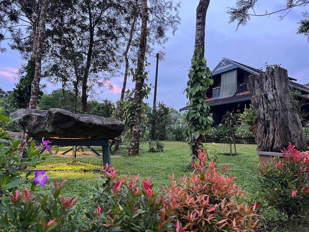 Teeplantage & Cottage mit Blick auf die Berge bei Sonnenaufgang